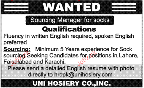 Apply as per details in job advertisement. Login to view further details of how to apply via https://www.jobz.pk online.