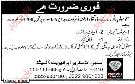 Apply as per details in job advertisement. Login to view further details of how to apply via https://www.jobz.pk online.