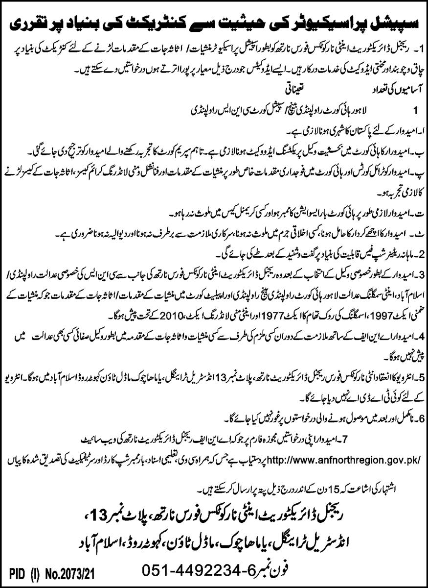 Special Prosecutor Jobs In Directorate Anti Narcotics Force