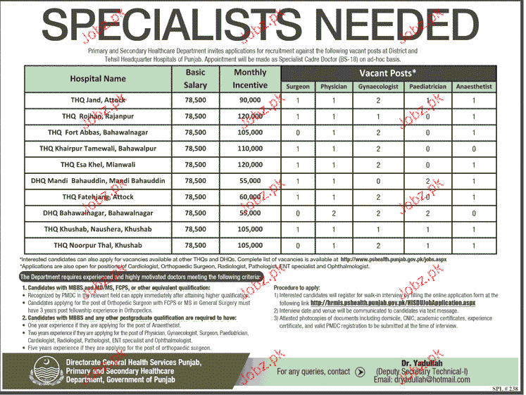 Specialists Doctors Job In Health Department Govt Of Punjab