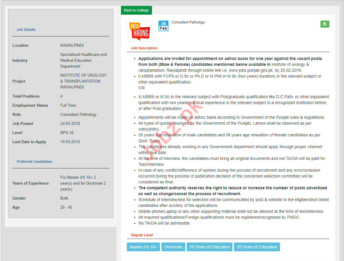Apply as per details in job advertisement. Login to view further details of how to apply via https://www.jobz.pk online.