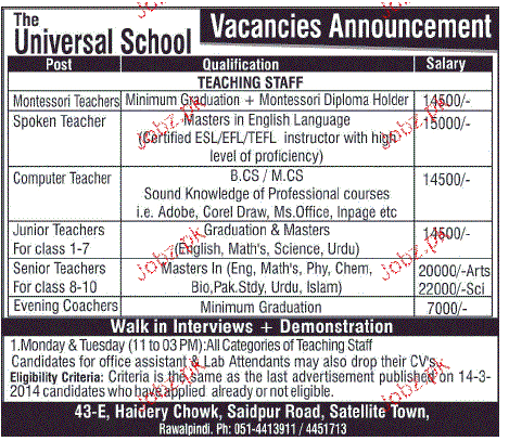 Latest Private Company Teaching Posts Rawalpindi 2025