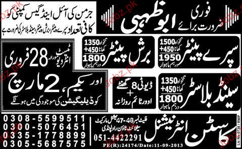 Spray Painters, Brush Painters and Sand Blasters are required in Abu Dhabi
