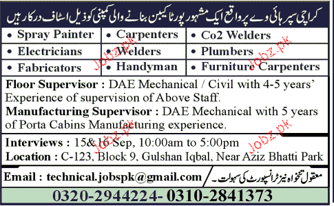Spray Painters, Electricians And Fabricators Job Opportunity