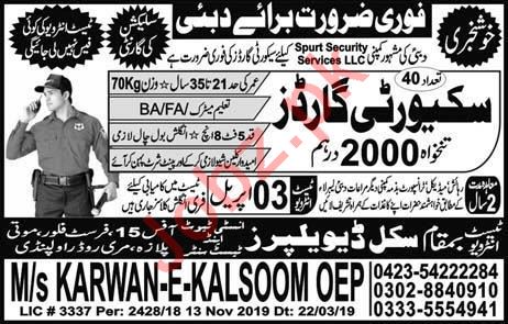 Latest Karwaan e Kulsoom Overseas Employment Services Security Posts Dubai 2025