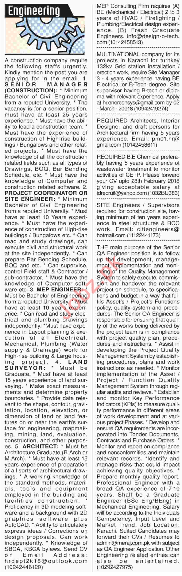 Latest Construction Company Engineering Posts Karachi 2025