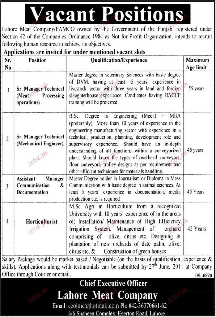 Apply as per details in job advertisement. Login to view further details of how to apply via https://www.jobz.pk online.