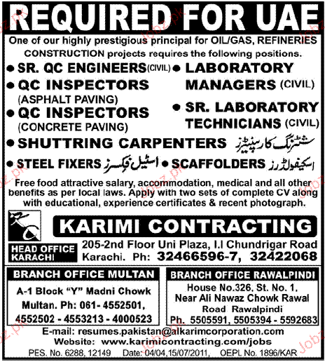 Sr Qc Engineer, QC Inspector, Manager Job Opportunity