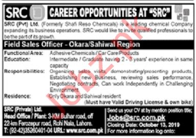 SRC Pvt Ltd Jobs For Field Sales Officer In Sahiwal & Okara