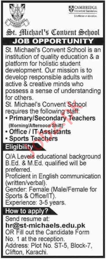 ST Michaels Convent School Jobs 2019 In Karachi