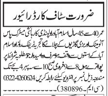 Private Company jobs advertisement dated about 8 February 2024 in daily Jang Newspaper invites application for the vacant post of staff car driver, ltv driver and driver in Islamabad, islamabad Islamabad Pakistan. Preferred Education is Matric and Middle etc.