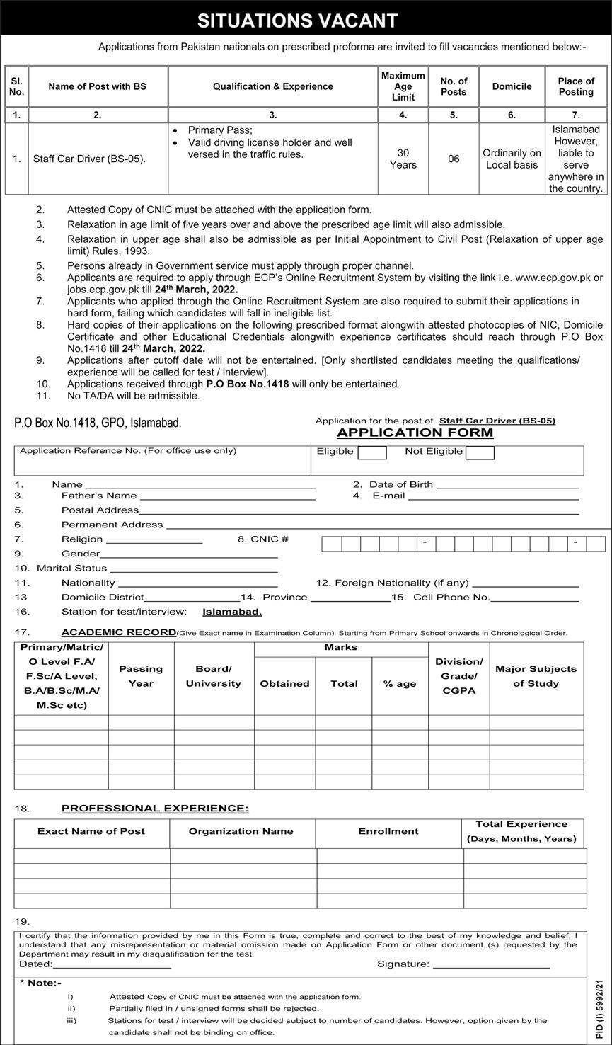 Staff Car Driver Islamabad Jobs 2022