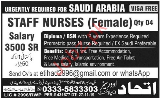 Staff Nurses Jobs 2019 For Saudi Arabia