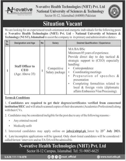 Vacancies in N ovative Health Technologies NHT Advertisement July 2021