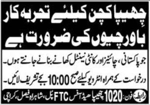Vacant posts including bawarchi are announced in Chhipa Welfare Shahrah-e-Faisal Karachi, karachi Sindh Pakistan as per 11 May 2025 advertisement in daily Jang Newspaper. Persons with Primary, Middle and Matric etc. education can apply.
