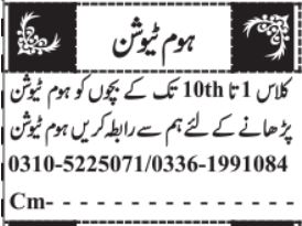 Home latest Classifieds Teaching jobs and others can be applied till undefined NaN, NaN or as per closing date in newspaper ad. Read complete ad online to know how to apply on latest Home job opportunities.