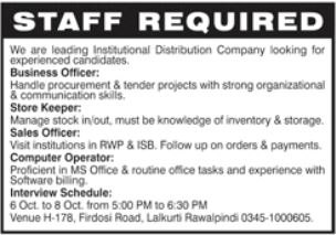 Vacant posts including store keeper, business officer, sales officer and computer operator are announced in Distribution Company Lalkurti Rawalpindi, rawalpindi Punjab Pakistan as per 13 October 2025 advertisement in daily Jang Newspaper. Intermediate, Master and Bachelor etc. educational qualification will be preferred.