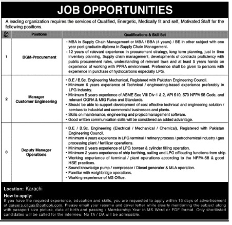 Private Group Karachi, karachi Sindh Pakistan invites applications from eligible candidates for the post of manager customer engineering, dgm procurement and deputy manager operation as per advertisement of November 10, 2024 published in daily Nawaiwaqt Newspaper. MS, Bachelor, B.E, MBA and Master etc. educational qualification will be preferred.