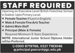 Punjab Group of Colleges PGC jobs advertisement dated about 15 September 2025 in daily Jang Newspaper invites application for the vacant post of female fine arts teacher, female teacher, admin male staff and principal in Lahore, lahore Punjab Pakistan. Preferred Education is Master, Mphil, MS and Bachelor etc.