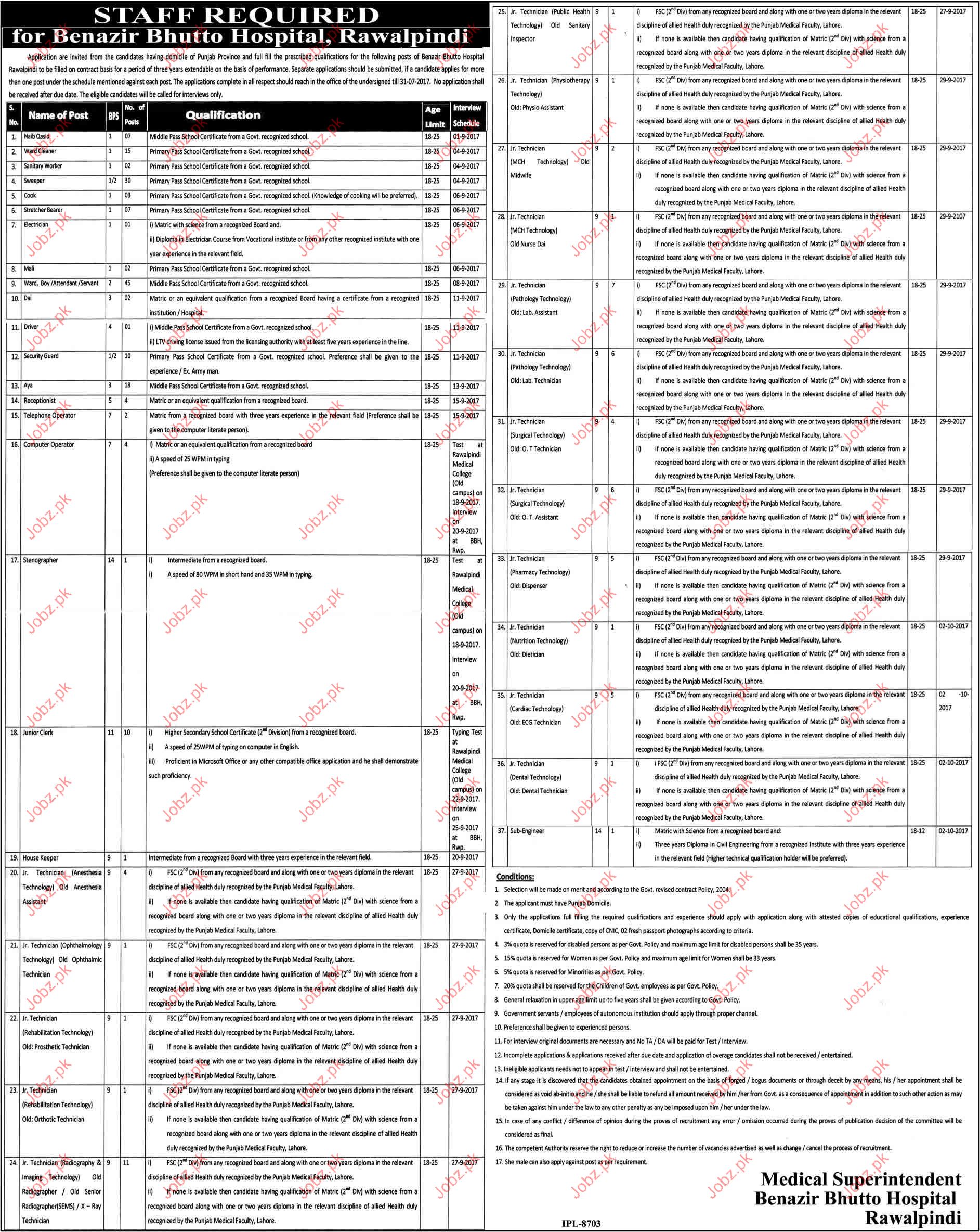 Latest Benazir Bhutto Hospital Rawalpindi Medical Posts Rawalpindi 2025