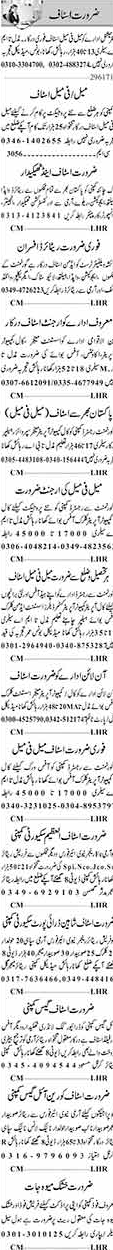 Staff Required in Dunya Classified 26th July 2017