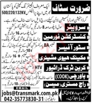 Engineering Company is looking for candidates for following posts as per job advertisement published in daily Jang Newspaper of August 21, 2022 for location Lahore, lahore Punjab Pakistan: