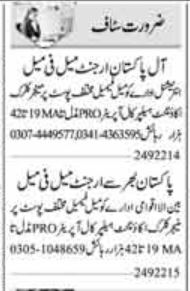 Apply as per details in job advertisement. Login to view further details of how to apply via https://www.jobz.pk online.