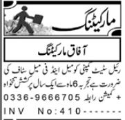 Real Estate Company jobs advertisement dated about 16 July 2022 in daily Aaj Newspaper invites application for the vacant post of male female staff in Peshawar, peshawar Khyber Pakhtunkhwa KPK Pakistan. Preferred Education is Bachelor and Intermediate etc.