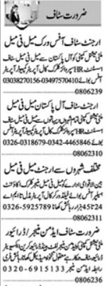Private Company invites applications for job positions advertised in daily Dunya dated 8 June 2023 for following vacancies in Lahore, lahore Punjab Pakistan.