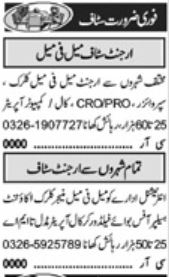 Private Company is looking for candidates for following posts as per job advertisement published in daily Khabrain Newspaper of October 11, 2023 for location Lahore, lahore Punjab Pakistan: