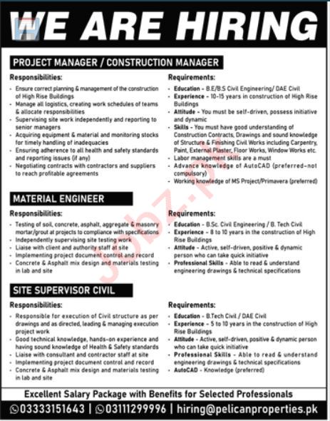 Private Company Multan, multan Punjab Pakistan invites applications from eligible candidates for the post of site supervisor civil, project manager and material engineer as per advertisement of November 13, 2022 published in daily Jang Newspaper. Persons with Bachelor and Master etc. education can apply.