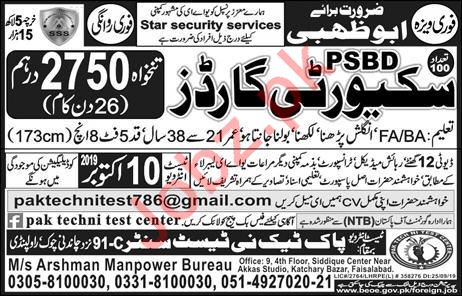 Latest Pak Techni Test Center Security Posts Abu Dhabi 2025