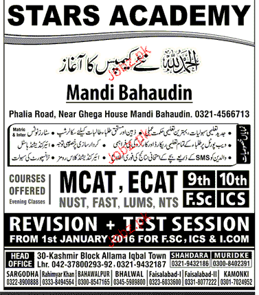 Stars Academy Admission in Courses in Lahore. Read newspaper ad for exact details.