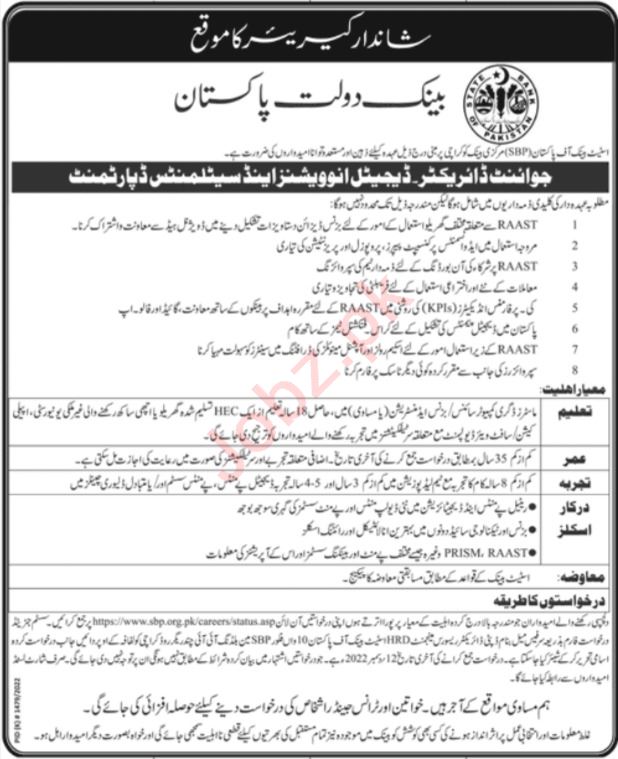 State Bank of Pakistan SBP is looking for candidates for following posts as per job advertisement published in daily Jang Newspaper of November 27, 2022 for location Karachi, karachi Sindh Pakistan: