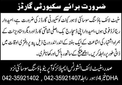 Latest State Life Housing Society Security Posts Lahore 2025