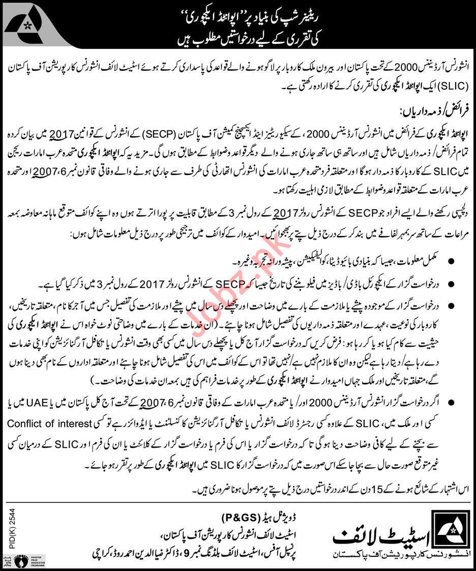 Vacancies in State Life Insurance Corporation of Pakistan Advertisement January 2020