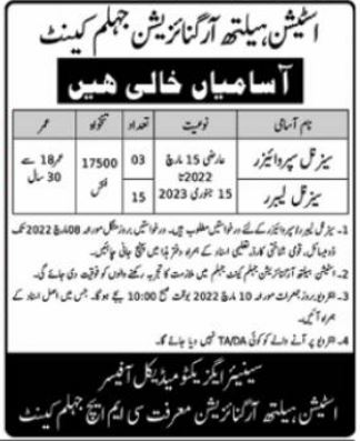 Station Health Organization is looking for candidates for following posts as per job advertisement published in daily Nawaiwaqt Newspaper of February 20, 2022 for location Jhelum, jhelum Punjab Pakistan: