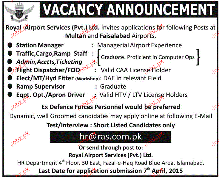 Apply as per details in job advertisement. Login to view further details of how to apply via https://www.jobz.pk online.