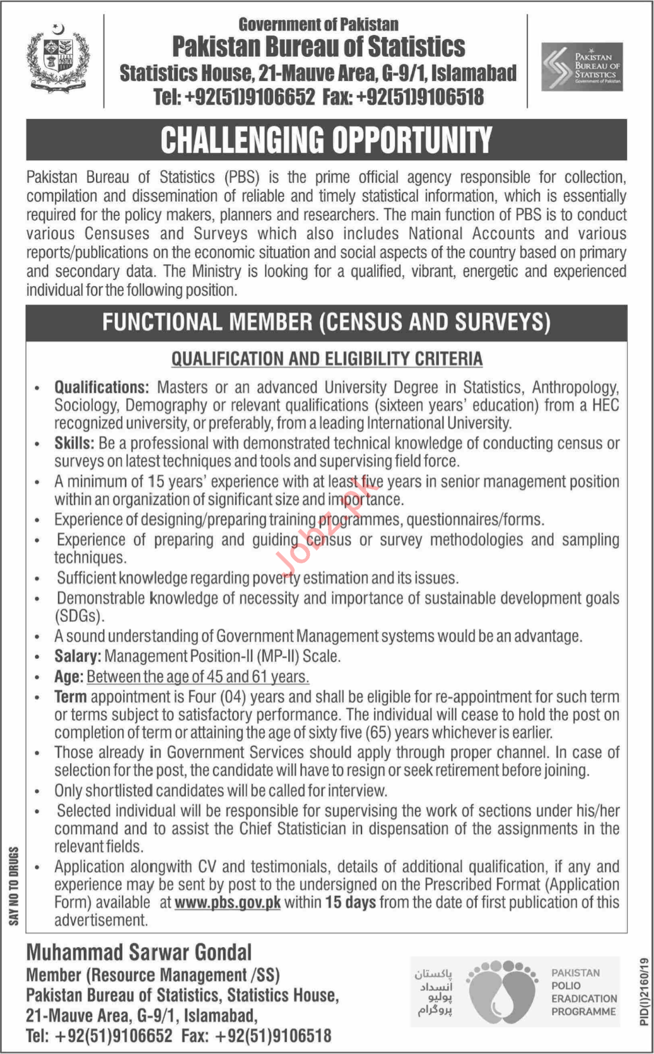 Latest Pakistan Bureau of Statistics Management Posts Islamabad 2025