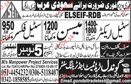 Steel Ericators, Mason and Steel Fixers Job Opportunity