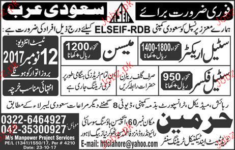 Steel Ericators, Mason and Steel Fixers Job Opportunity