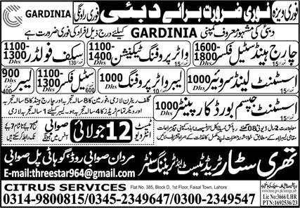 Three Star Trade Test & Training Centre invites applications for job positions advertised in daily Express dated 9 July 2023 for following vacancies in UAE, dubai UAE.