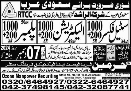 Ozone Manpower invites applications for job positions advertised in daily Express dated 3 December 2024 for following vacancies in Riyadh, riyadh Saudi Arabia.