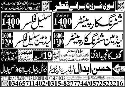 New Brand Manpower is looking for candidates for following posts as per job advertisement published in daily Express Newspaper of August 18, 2024 for location Qatar, qatar Qatar: