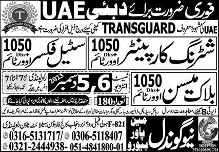 New Gondal Manpower Bureau invites applications for job positions advertised in daily Express dated 5 December 2023 for following vacancies in Abu Dhabi, dubai UAE.