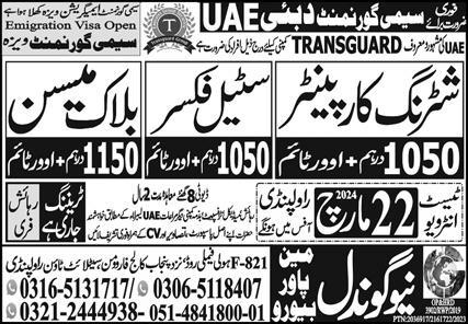 Vacant posts including mason, block mason, steel fixer and shuttering carpenter are announced in New Gondal Manpower Bureau Abu Dhabi, dubai UAE as per 20 March 2024 advertisement in daily Express Newspaper. Persons with Matric and Intermediate etc. education can apply.