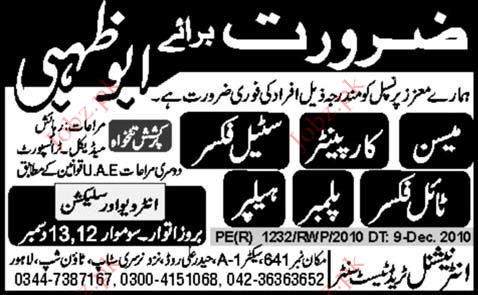 Steel Fixer, Care Painter, Mason, Helper, Plumber Vacancy