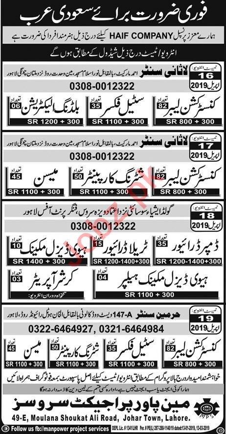 Latest ManPower Project Service Construction Posts Saudi Arabia 2025