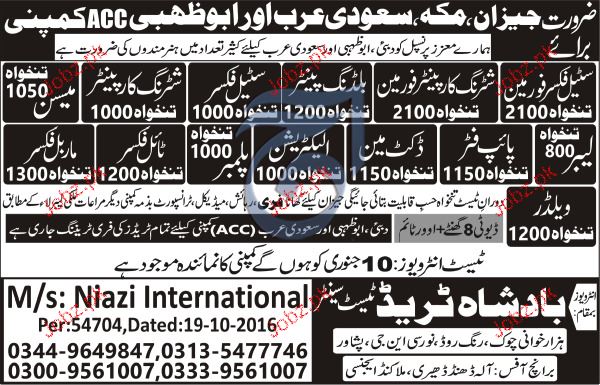 Apply as per details in job advertisement. Login to view further details of how to apply via https://www.jobz.pk online.