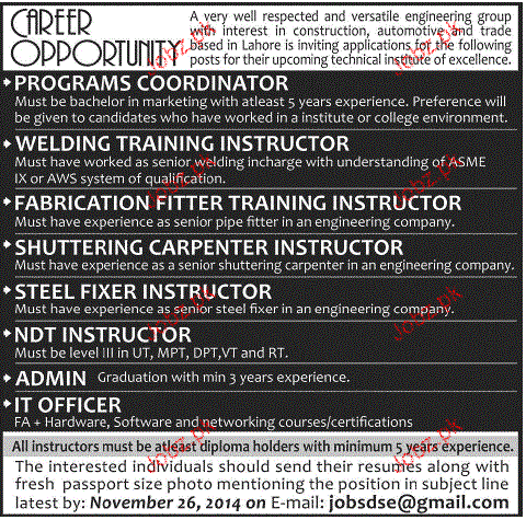 Steel Fixer Instructors, NDT Instructors Job Opportunity